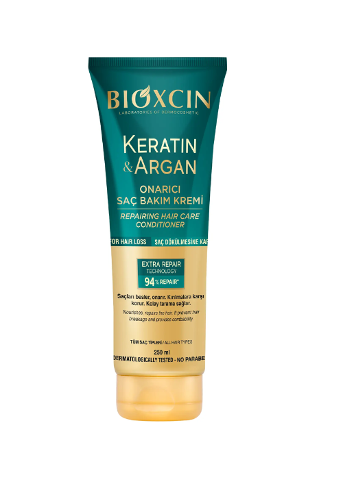 Bioxcin Keratin & Argan Conditioner — ухаживающий кондиционер для всех типов волос, который питает, укрепляет и восстанавливает волосы по всей длине.